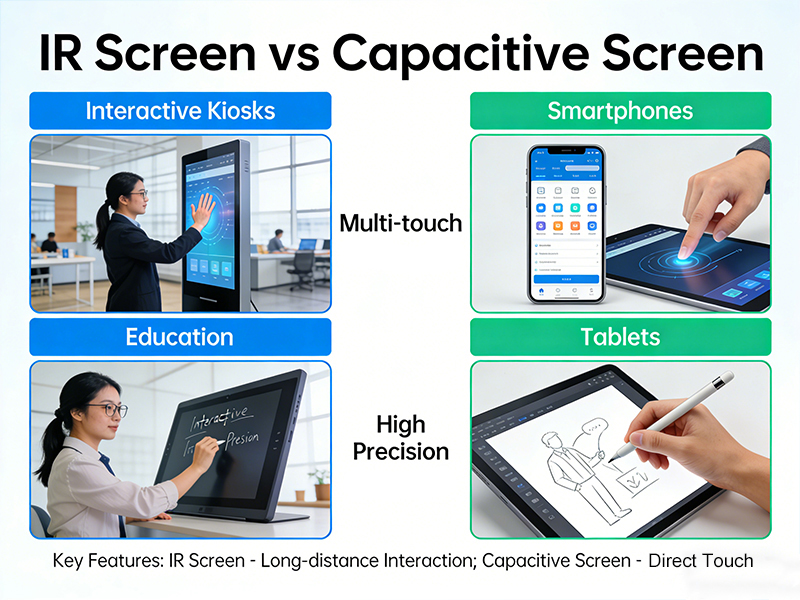 In smart classrooms, collaborative meeting spaces, and commercial display environments, touch technology is central to interactive experiences. Among the many solutions available today, infrared touch and capacitive touch are two of the most widely used technologies. Understanding their working principles and differences in practical applications helps schools and businesses choose the most suitable interactive display solution.