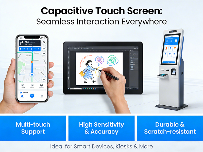 On the other hand, capacitive touch technology is based on the conductivity of the human body. A transparent conductive layer on the screen surface generates a stable electrostatic field. When a finger touches the screen, it changes the local capacitance, allowing the system to detect the touch location. Capacitive touch offers advantages such as fast response, high precision, and smooth operation, making it widely used in smartphones and tablets. Its strengths lie in its sensitive touch response and accurate gesture recognition, but it typically requires conductive input and may respond poorly to non-conductive objects.